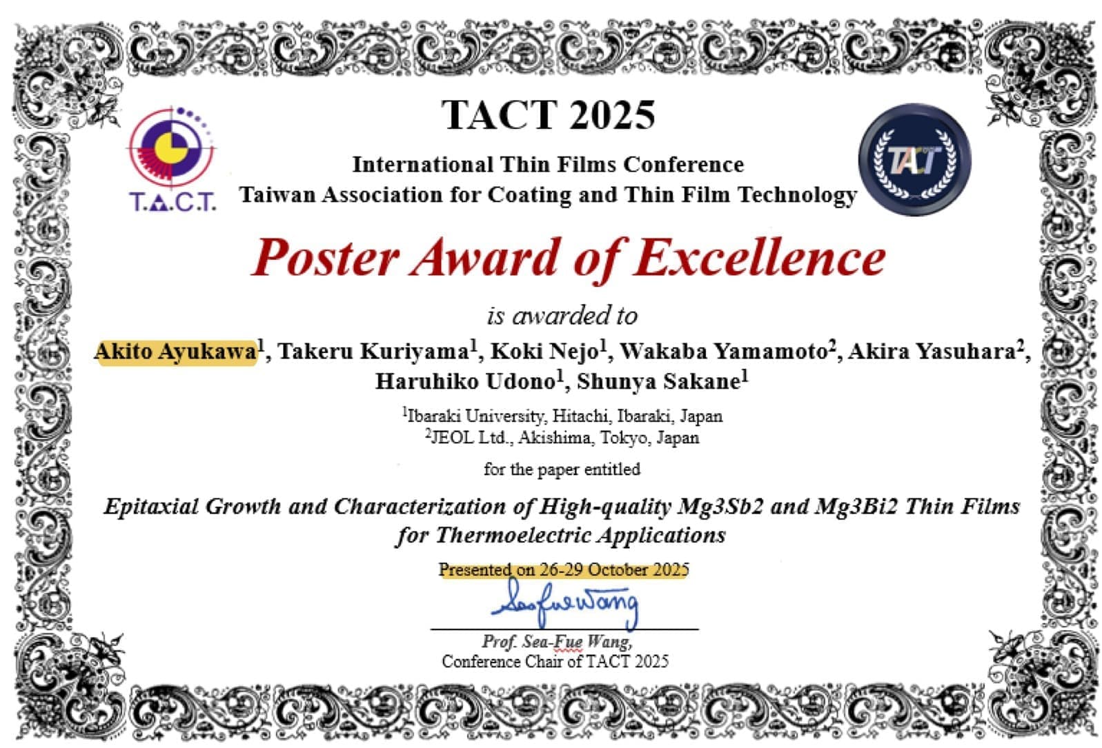 Poster Award of Excellence (TACT 2025) |